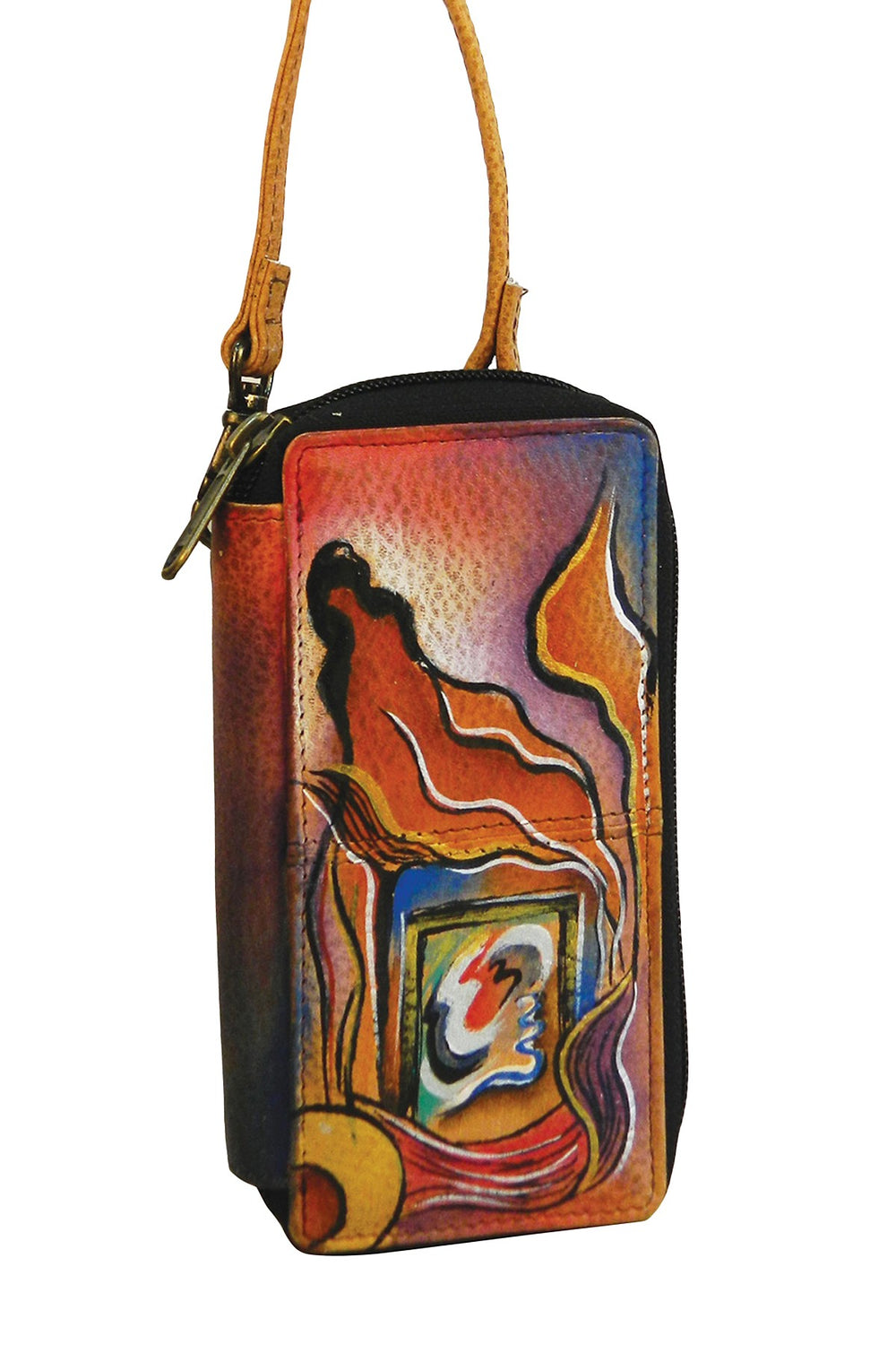 Hidden Window Leather Smartphone Case & Wallet:  Since the late 80s, Swapan Basu and his wife Roma have been designing hand-painted Anuschka purses, continuously evolving the art and production.  For over 25 years, Anuschka has remained a family owned, designed, manufactured and distributed one-of-a-kind hand painted collection at select boutiques across the world.