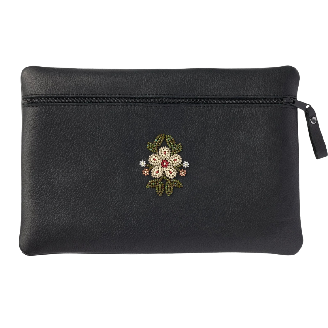 The Manitobah Floret Beaded Utility Bag features durable cow leather and detailed beadwork by artist Jaime Lepine. It combines practical function with traditional Métis craftsmanship for a stylish, meaningful accessory.