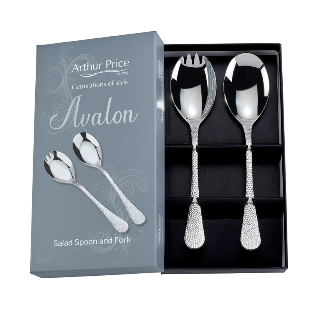 Avalon beautifully combines traditional and modern design elements. Each piece has a hammered textured finish to the handle, which adds interest and perfect for catching the light and adding glamour to any table setting.  Serve your salad in style with these stunning salad servers. Elegant packaging making them an ideal gift.