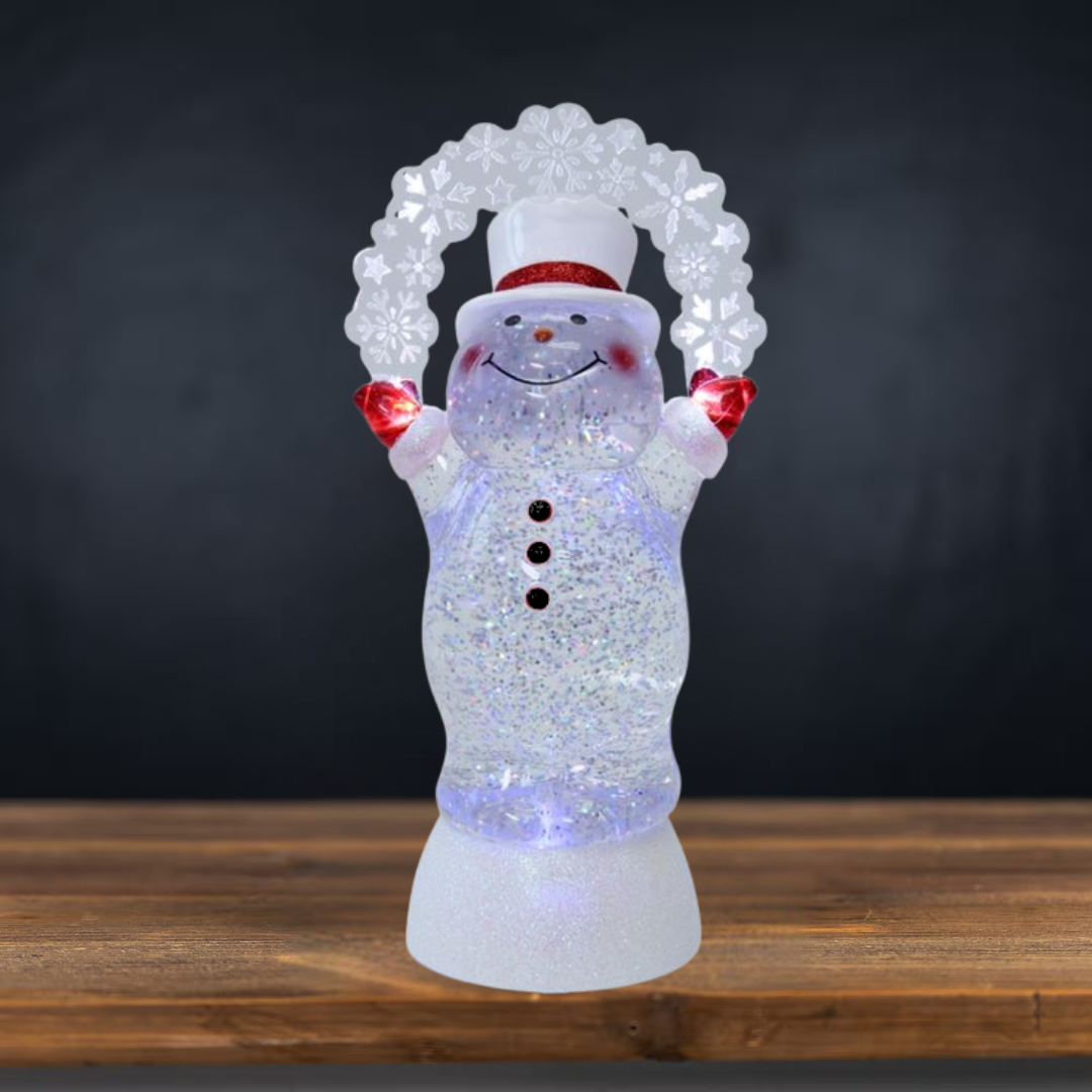 Light up your home with the charm of this Roman Swirl Snowman Shaped Glitterdome!  Sparkles continuously. The USB cable creates continuous motion bringing fun and frolic to the Christmas season.