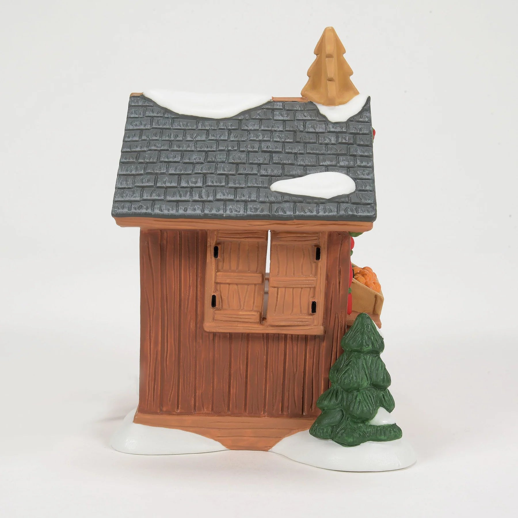 This wooden Market Stand features fruits for sale, these were a luxury item in the 19th century and a special item found both on the Christmas tree and in the stockings of good little girls and boys.