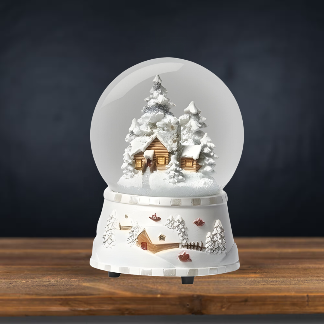Capture the timeless charm of the holiday season with the Roman Musical Dome featuring a white cabin surrounded by silver trees. This classic snow dome combines nostalgic design with gentle music, creating a serene winter scene perfect for Christmas décor. Its expert craftsmanship ensures a delicate balance of elegance and festive spirit, making it a refined addition to any holiday collection.