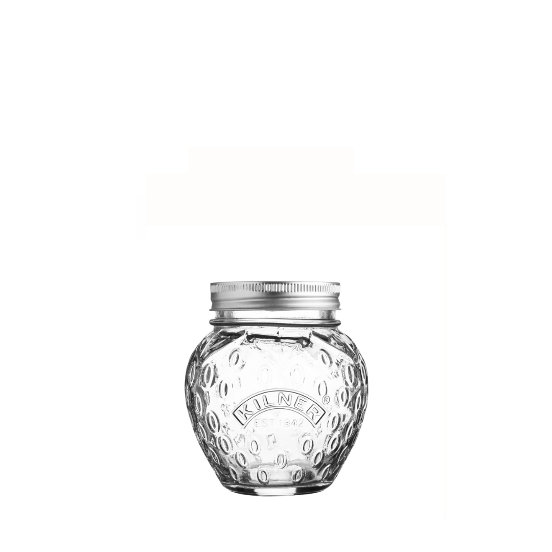 Screw-Top Preserve Jar, strawberry shape, 400ml, glass. A fun and fashionable way to serve precious jams, chutneys and preserves. Equipped with a 2-piece metal screw-top lid for a secure, vacuum seal. Dedicated to using sustainable and durable materials, Kilner® glass is 100% recyclable and is the safest and best option for storing food and drink.