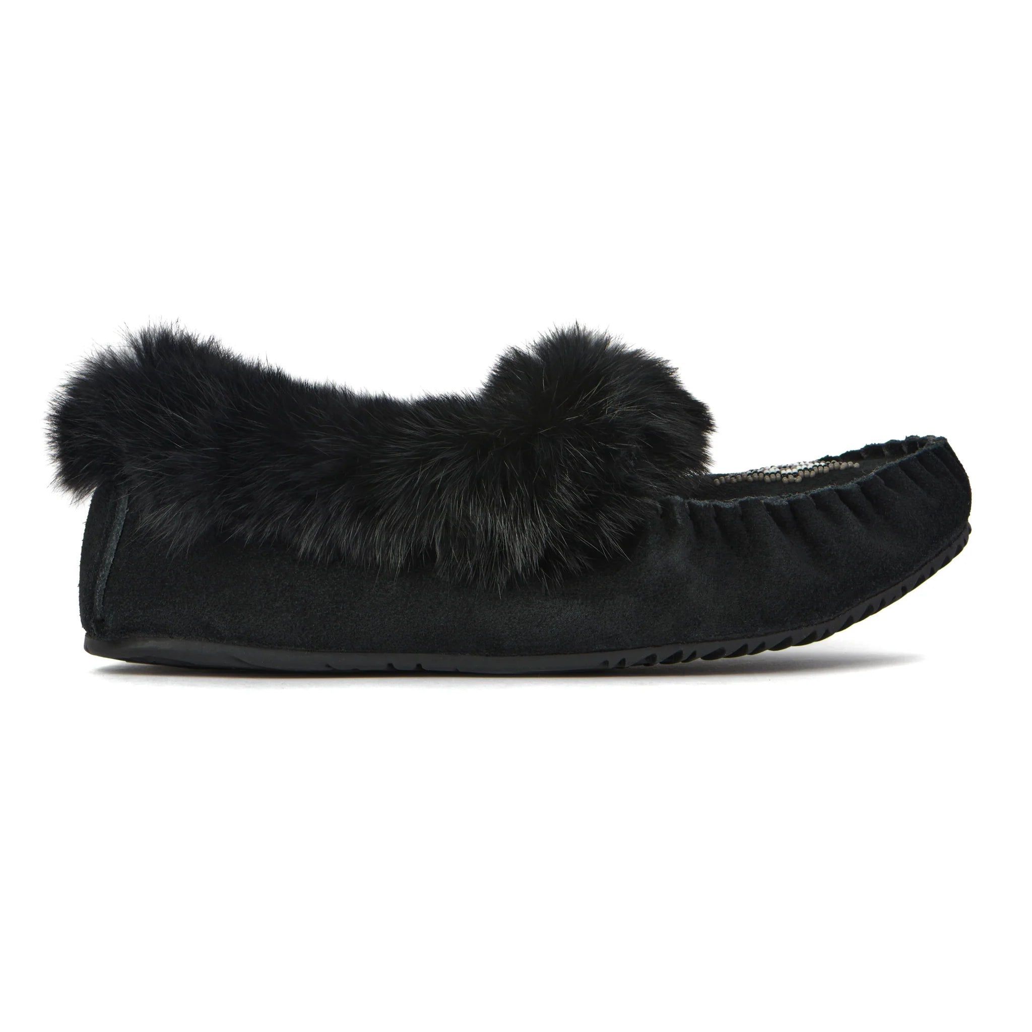 With its fur ankle cuff, beaded vamp, soft suede outer, fleece-lined footbed, and Turtle sole