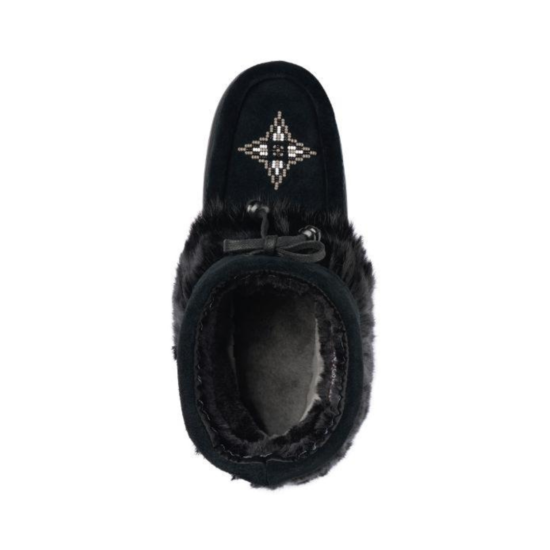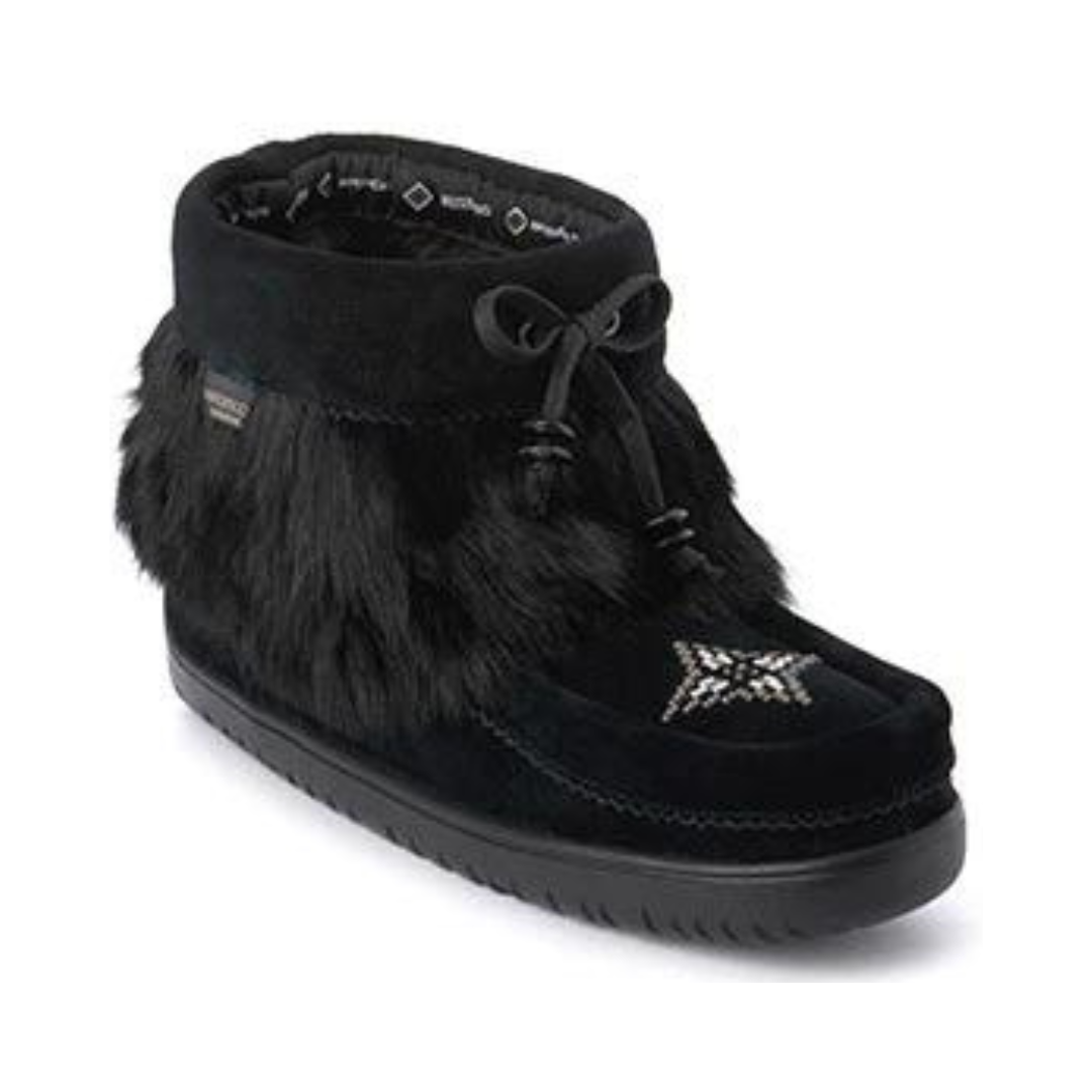 The Waterproof Keewatin Half-Mukluk combines cozy warmth and timeless style in a versatile 6" design. Crafted from suede with rabbit fur accents and a sheepskin-lined footbed, it’s rated to -29°C and finished with the Glacier Grip Tipi sole for reliable winter traction.