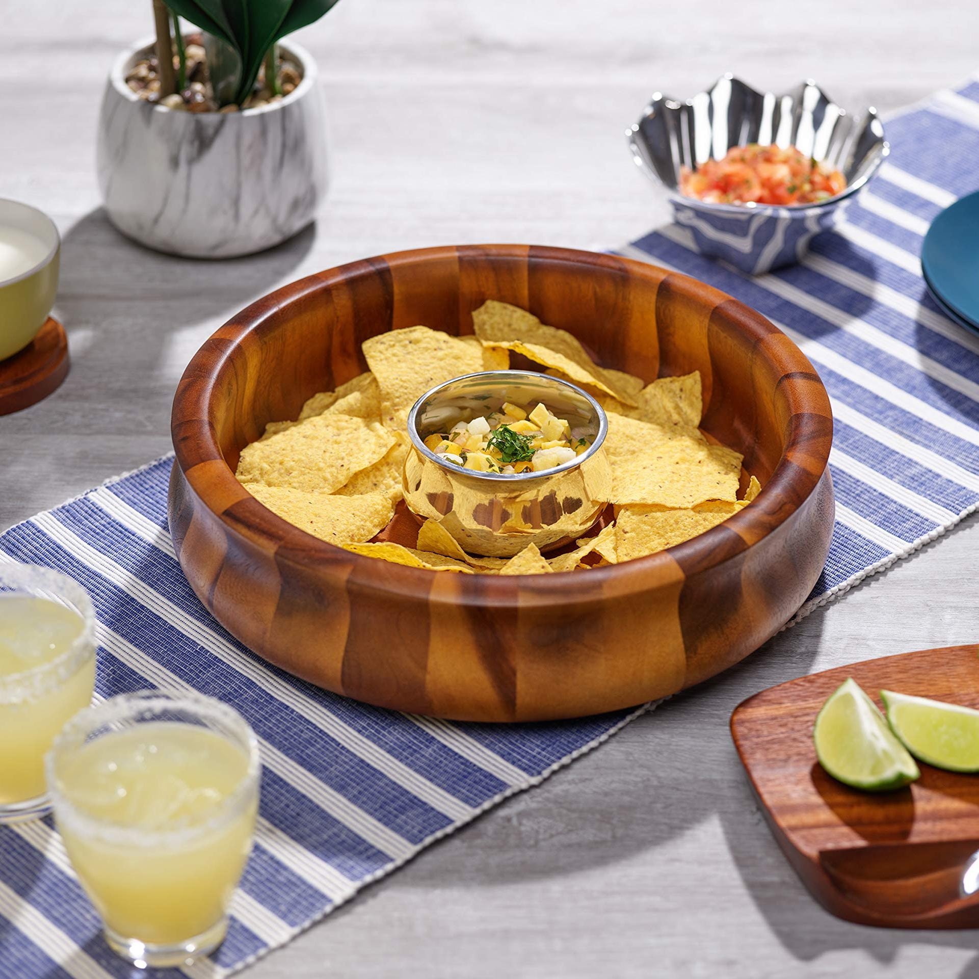 Sized for casual get-togethers with family and friends, the Nara Chip & Dip is an entertaining must-have. The bowl’s curved shape and flared opening complements any table décor, and the All