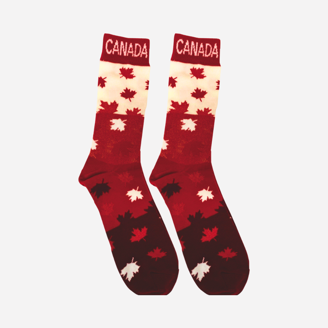 Show your true Canadian pride with these socks featuring a red and white leaf design. They're perfect for keeping your feet warm while representing your home country. Plus, they make a great souvenir for yourself or a friend! Step up your sock game with these uniquely Canadian socks.