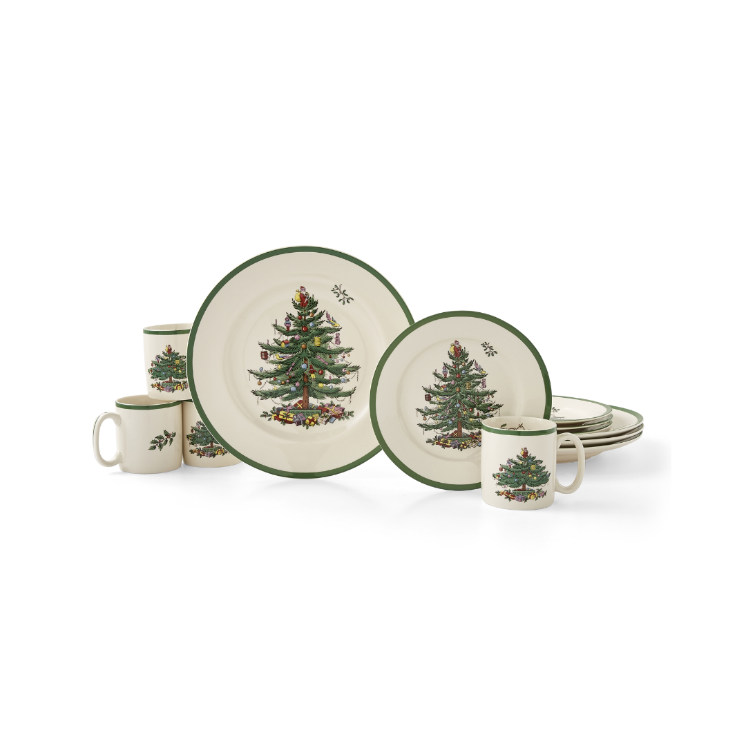 Christmas Tree brings nostalgia & warmth to all holiday tables since 1938. Create memories & start your collection with the 12-piece set: 4 10.5" dinner plates, 8" salad plates & 9 oz. mugs. Dishwasher & microwave safe.