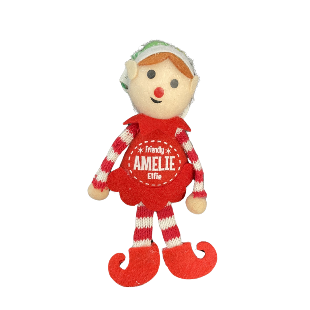Personalized Christmas Elf Shelf & Tree Ornaments add a unique touch to any festive display. Featuring a personalized combination of your name and an Elf name, these plush fabric figures will look perfect perched on shelves or hanging from trees.