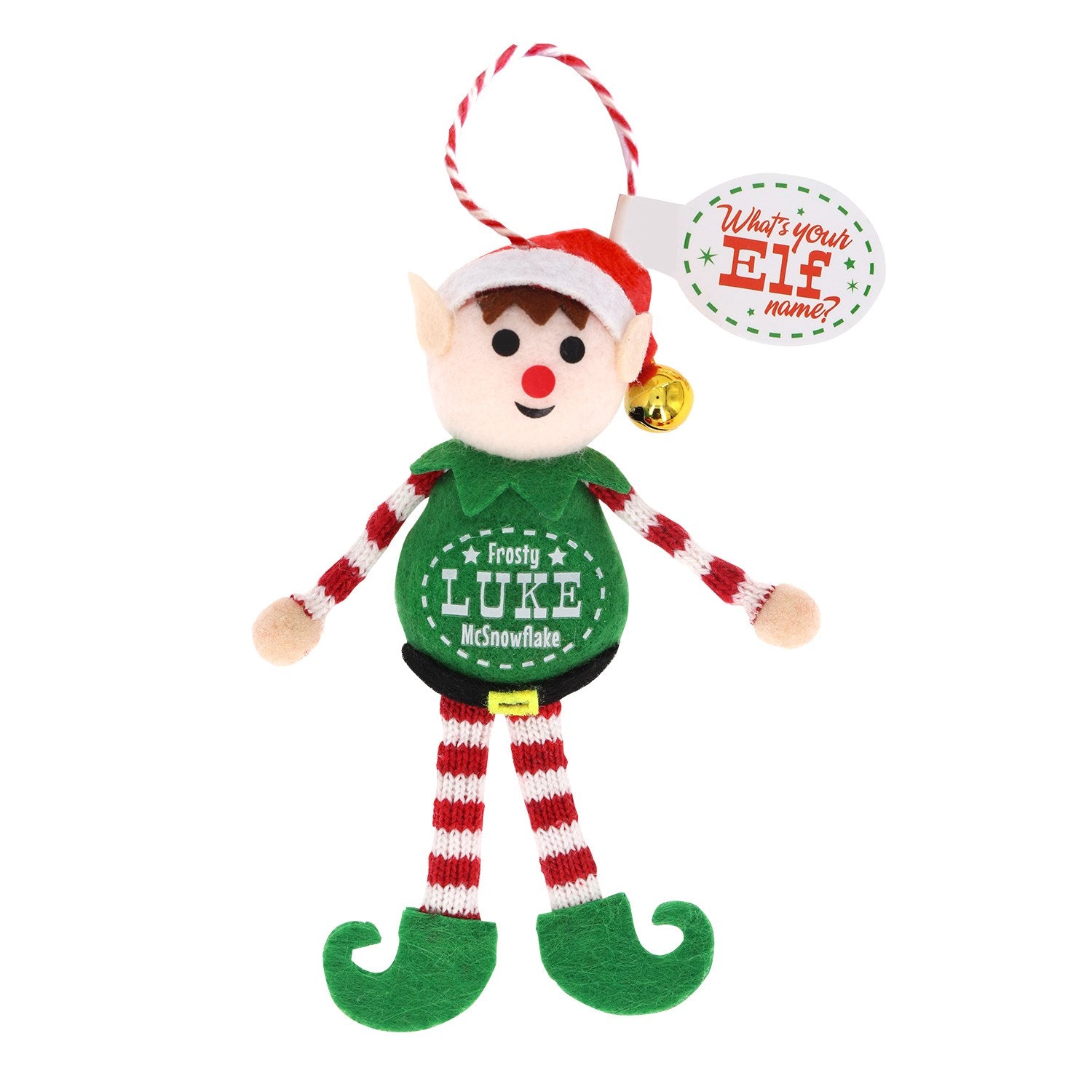 Personalized Christmas Elf Shelf & Tree Ornaments add a unique touch to any festive display. Featuring a personalized combination of your name and an Elf name, these plush fabric figures will look perfect perched on shelves or hanging from trees.
