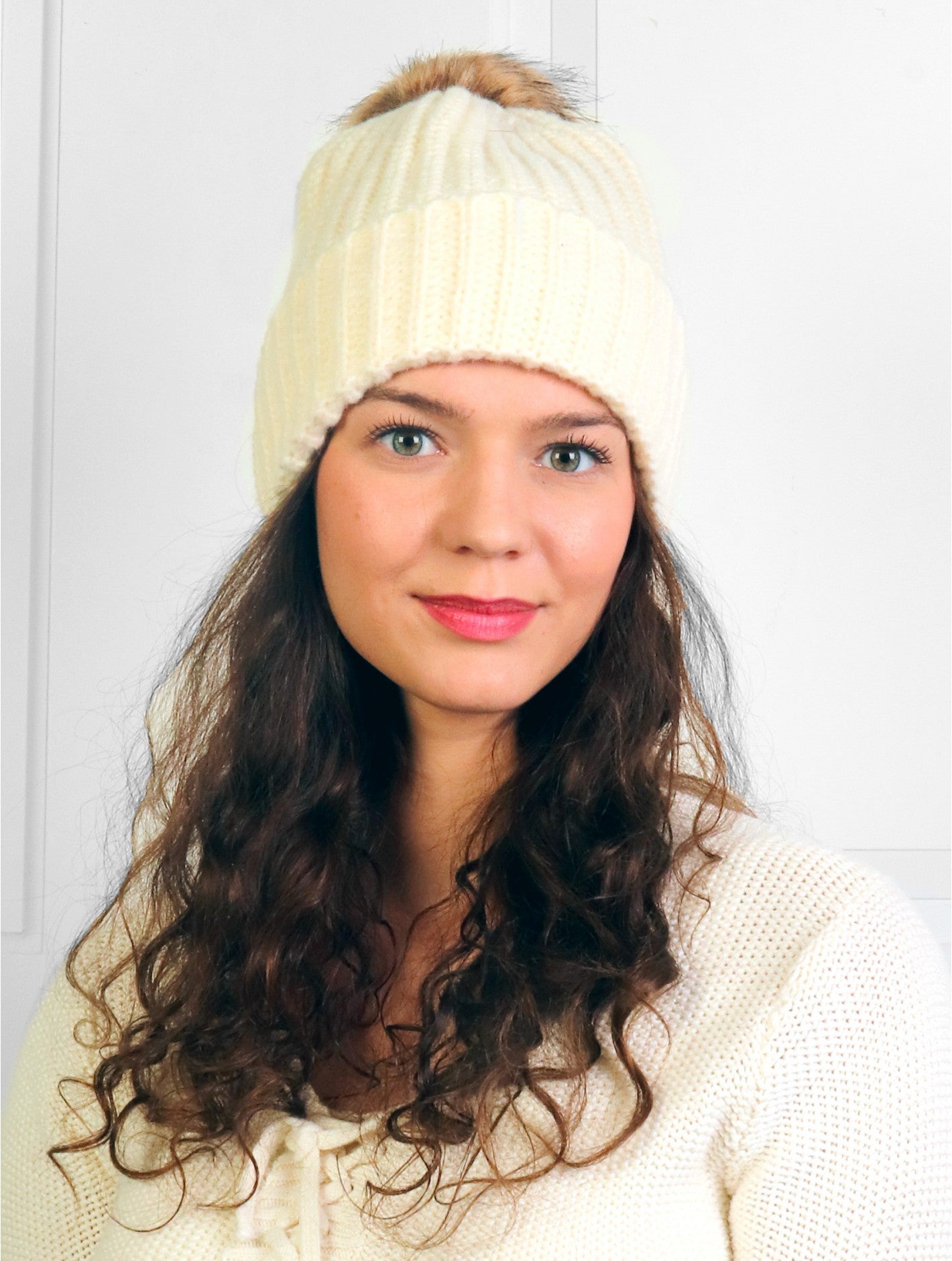 This cable-knit toque features a detachable faux fur pompom, designed for both women and men. It offers exceptional warmth and a luxuriously soft feel, perfect for chilly days.