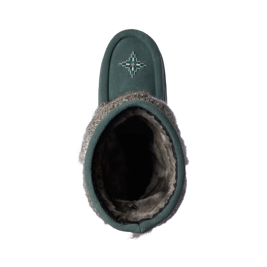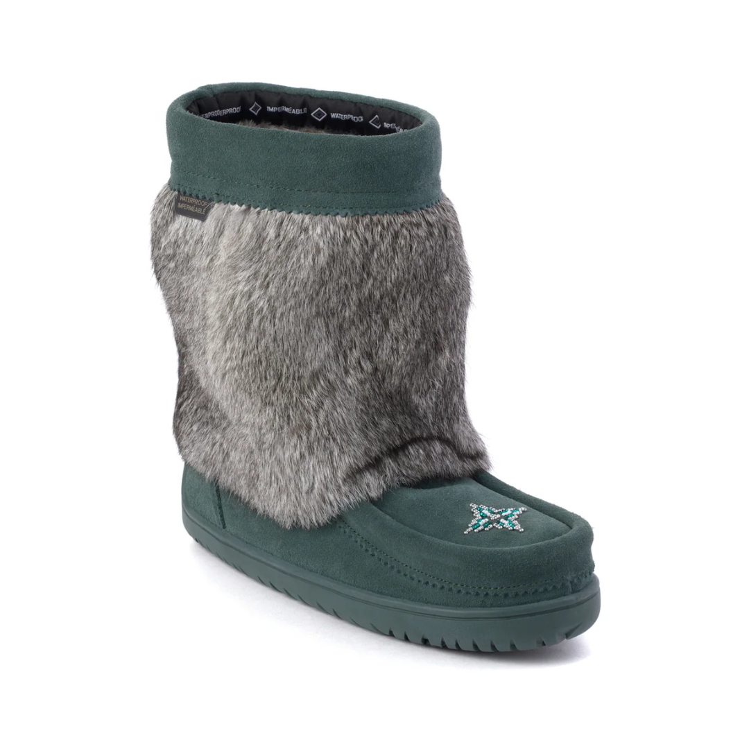 Crafted from premium cowhide suede and rabbit fur, it features a cozy sheepskin-lined footbed, full waterproofing up to 4 inches, and the Glacier Grip Tipi sole for dependable traction. Rated to -32°C, it’s the perfect blend of warmth, comfort, and winter-ready versatility.