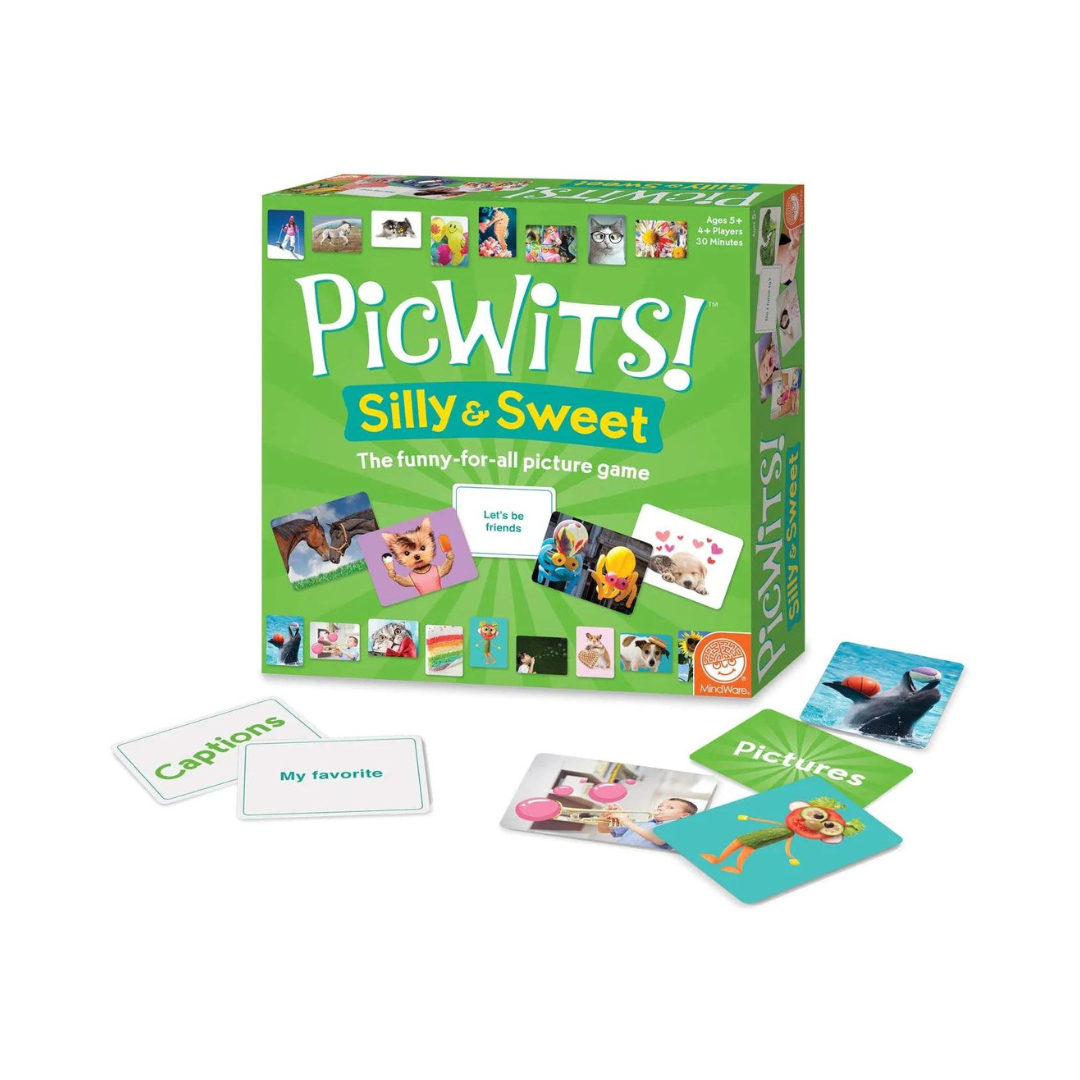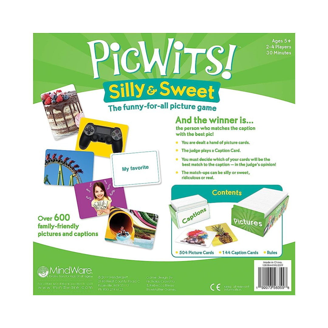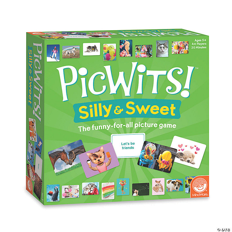 A funny-for-all edition of MindWare's best-selling PicWits! game.  Players match their picture cards with the caption card, and it's up to the judge to decide the winning match.  All pictures and captions are family-friendly, so match-ups are crazy and comical, ridiculous or real but never inappropriate for any audience.